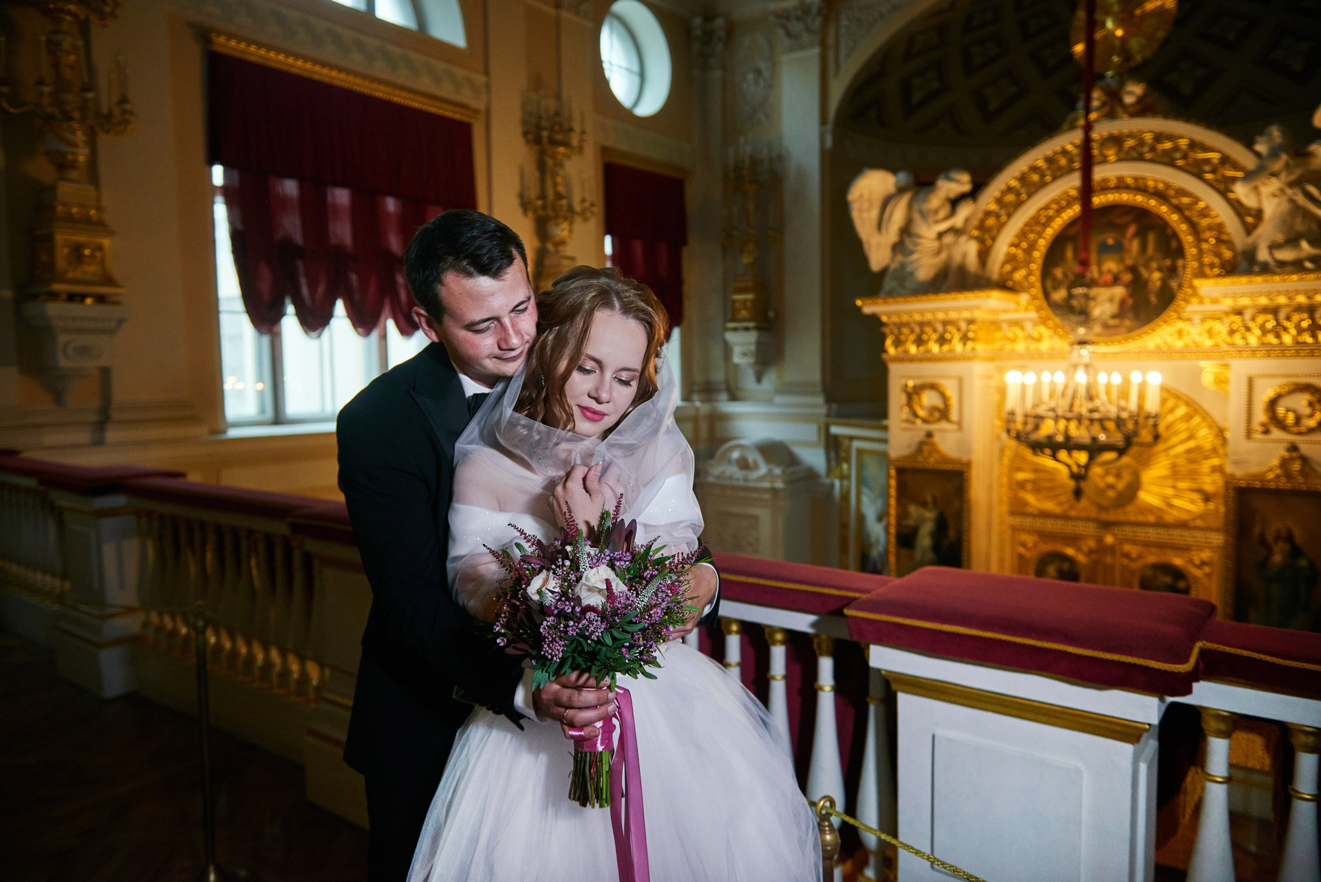 Елена и Иван (зимняя свадебная прогулка у Михайловского замка и фотосессия в Эрмитаже)