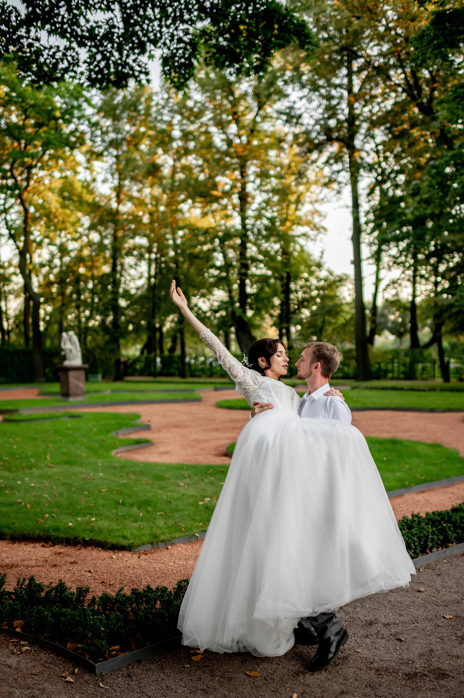 Осенняя свадебная прогулка в Екатерининском парке в Пушкине