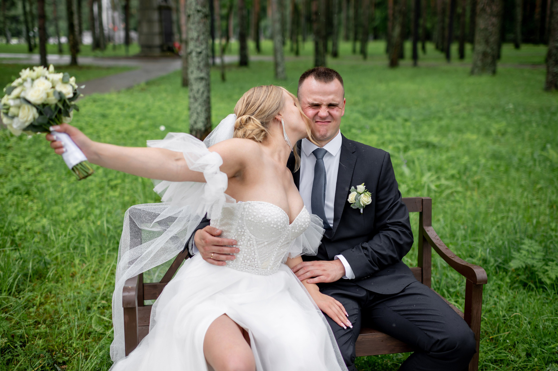 Ульяна и Дмитрий (свадебная прогулка в Сестрорецке под дождем, , фотосессия в верхнем парке Петергофа)