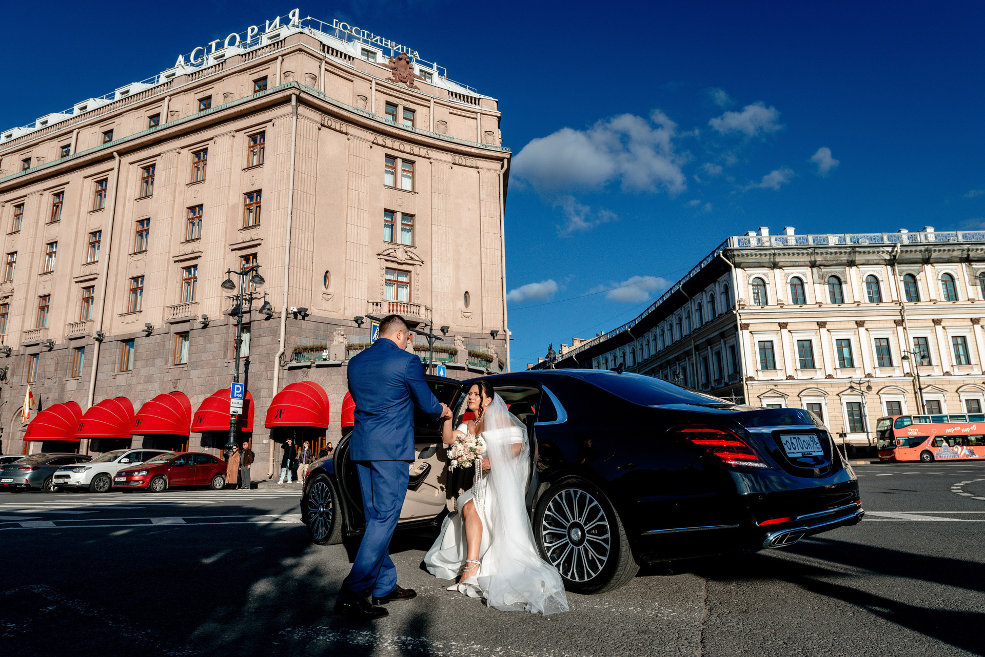 Диана и Евгений (маршрут № 1 в Питере: Исаакиевская площадь, красные маркизы Астории, набережная Мойки, Дворец Штиглица и Летний сад)